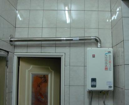 3.如熱水器確實無法裝置於屋外或空氣流通之處所,則應選擇室內型強制排氣熱水器(一般稱為FE式),  其內部設置排氣風機,可將廢氣經排氣管強制排放至屋外或是設置電熱水器。